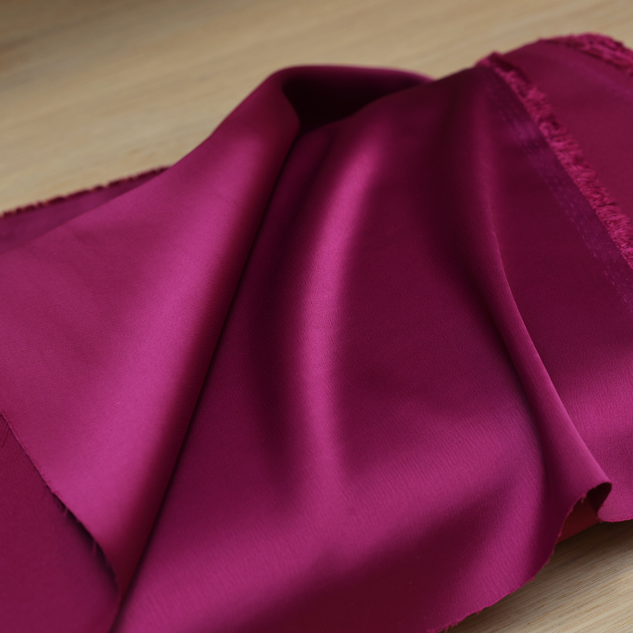 Saten srednje debljine sa dodatkom elastina koji pruža izuzetnu udobnost i lakoću krojenja. Ono što ga izdvaja je mogućnost korišćenja i sjajne i mat strane – sjajna strana reflektuje svetlost za glamurozan efekat, dok mat pruža suptilnu eleganciju i rafiniran izgled.