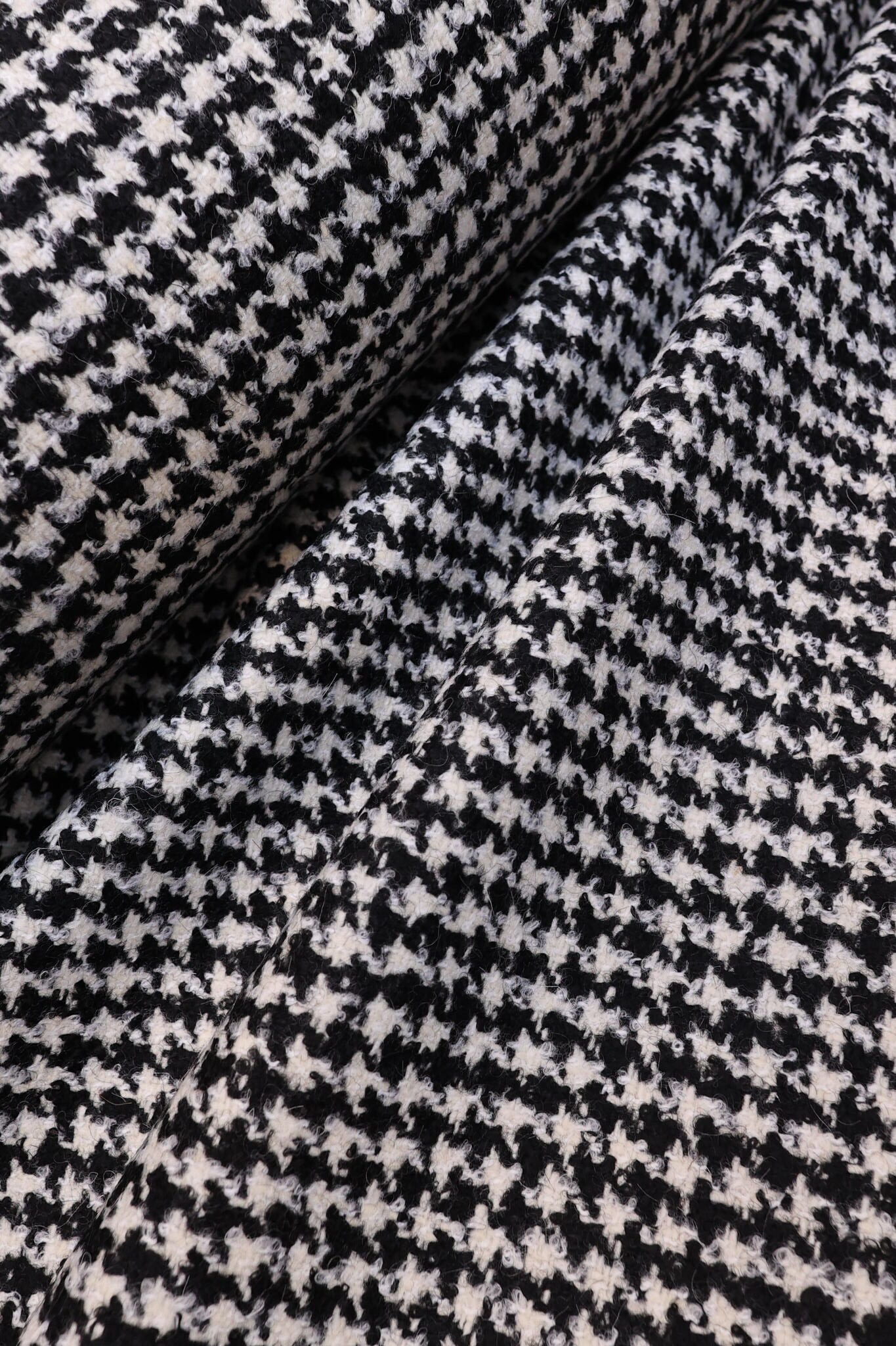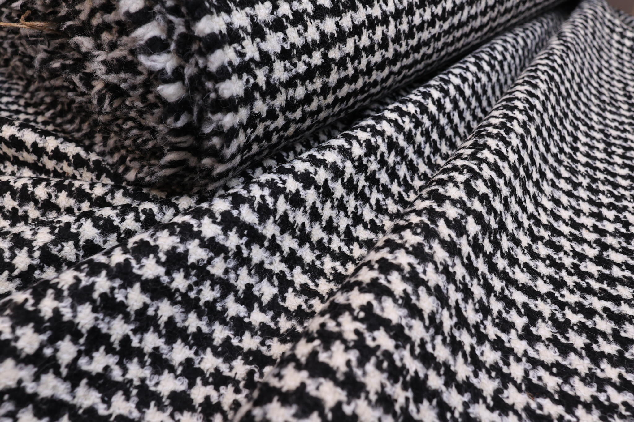 Klasični crno-beli Pepito dezen (Houndstooth) nikada ne izlazi iz mode, unoseći sofisticiranost i prepoznatljiv stil u Vaše kreacije. Gusto tkanje i bogata struktura čine ga idealnim za zimske i jesenje kapute, blejzere, sakoe i suknje.