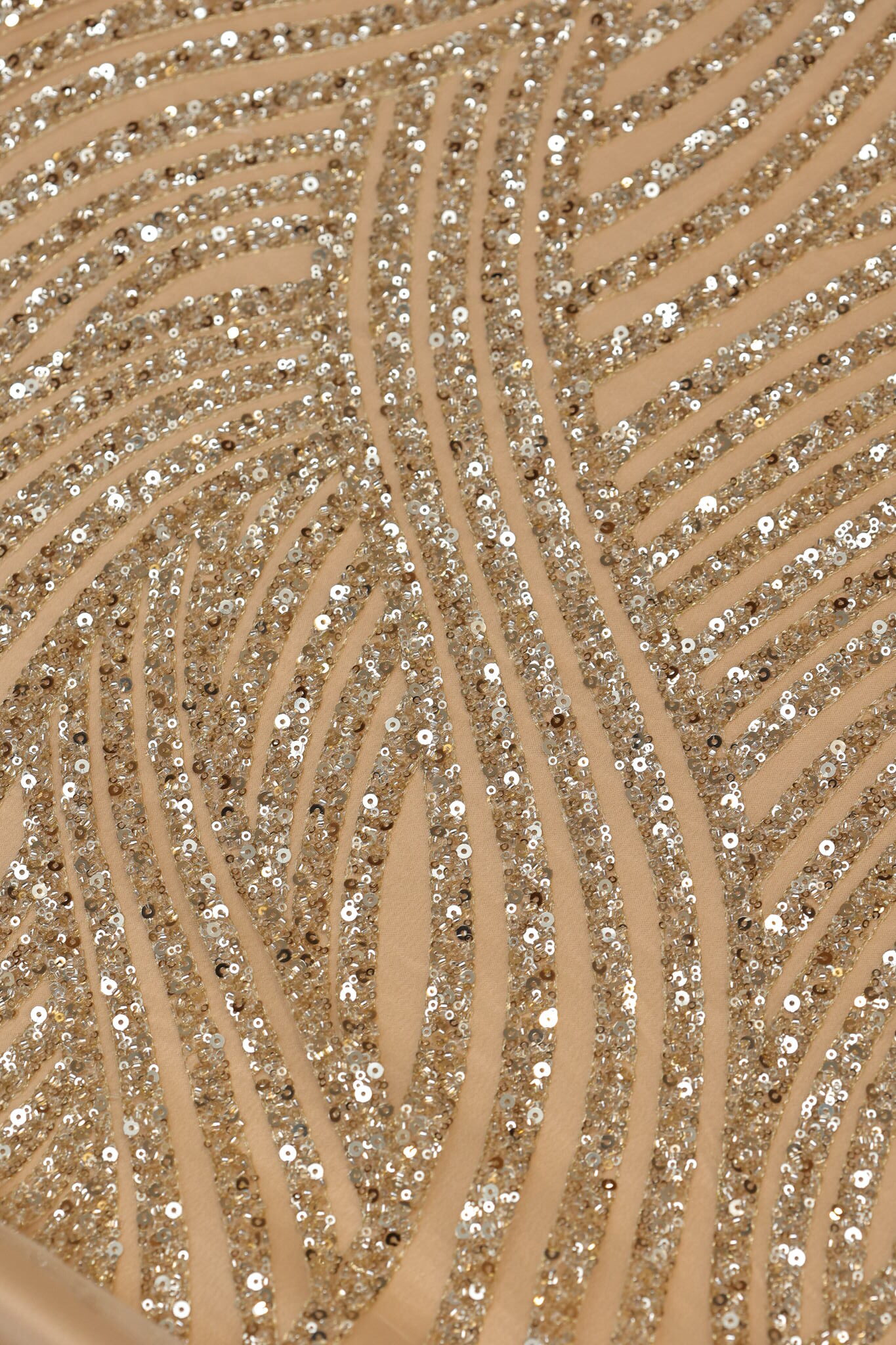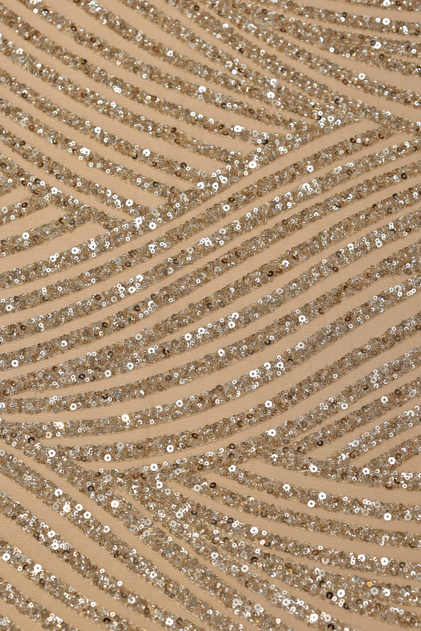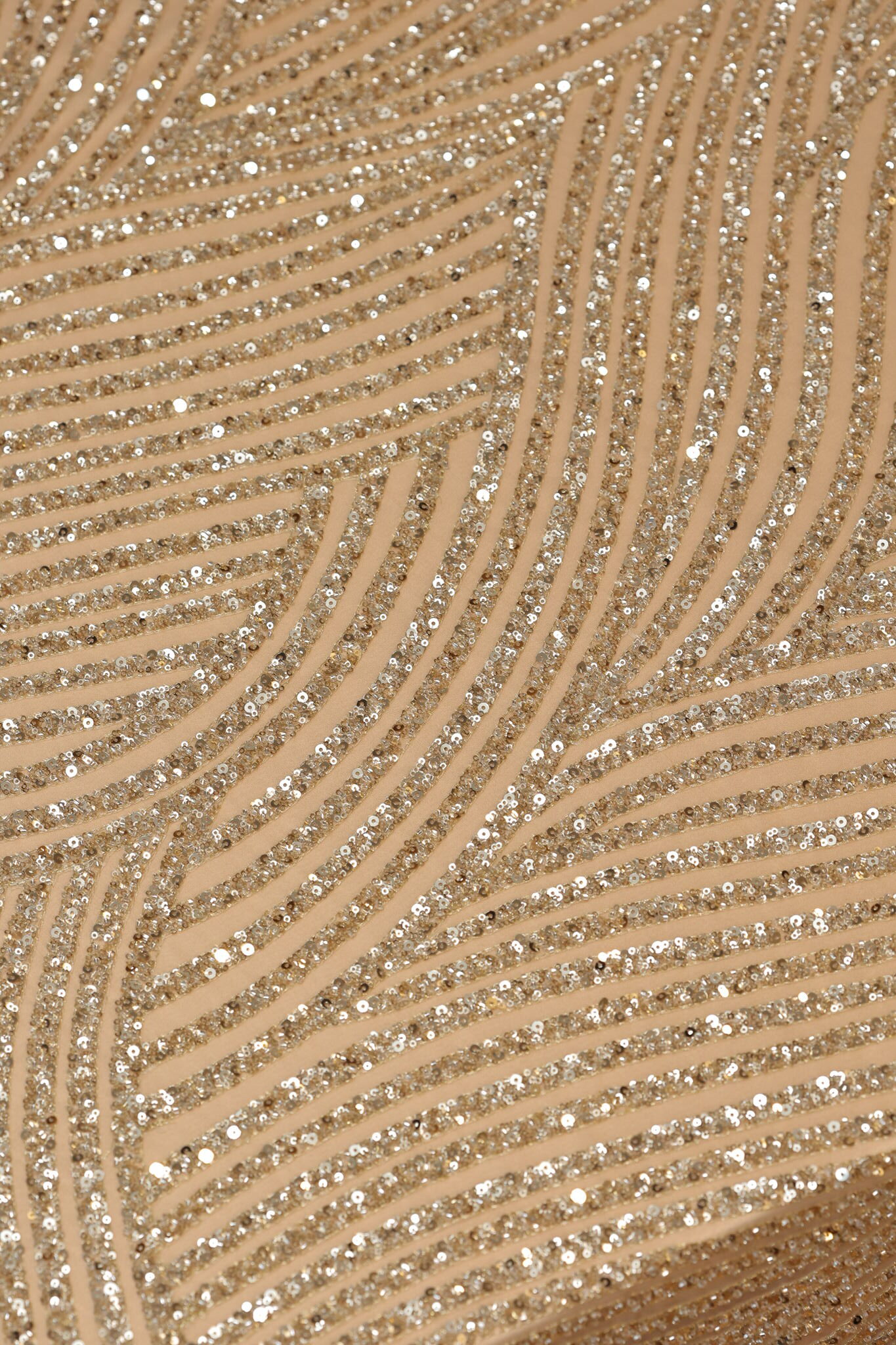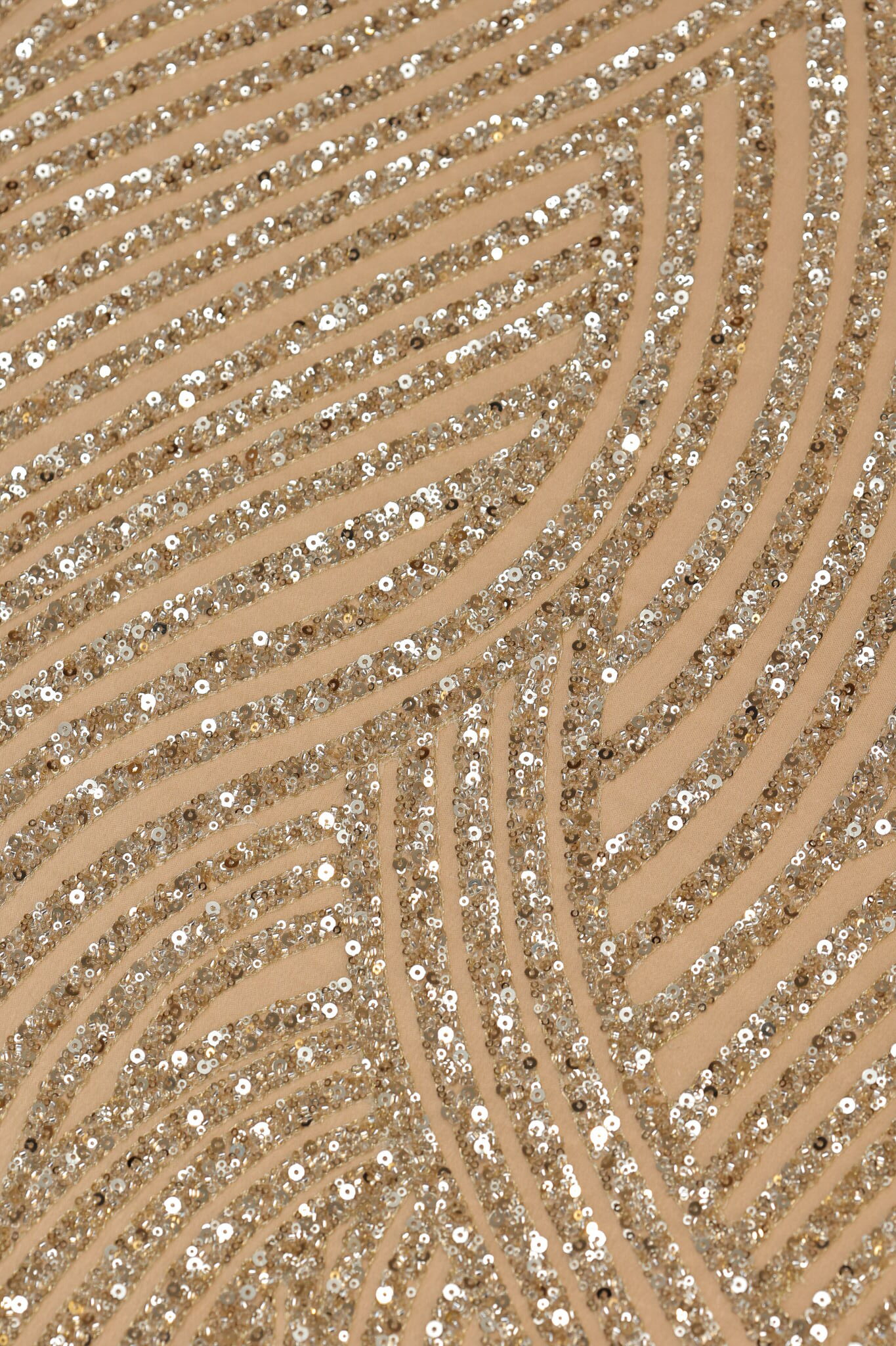 Asmietrična čipka prugastog dezena idealno strukira i izdužuje figuru.