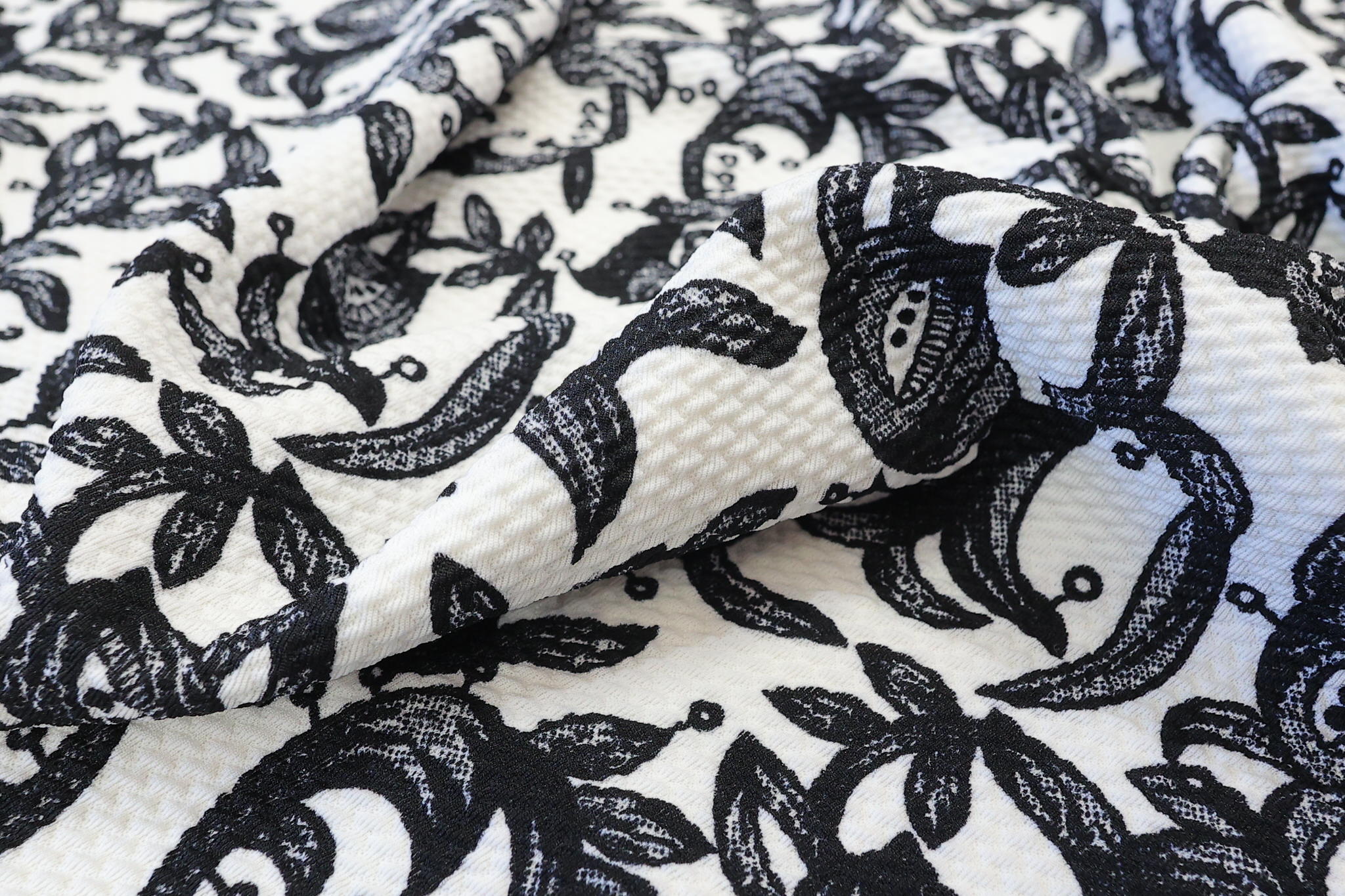 Double itwey Reljefna Elastična Likra sa Cvetnim Printom – Crno-Beli Dezen (Premium Kvalitet) PE012 – 65