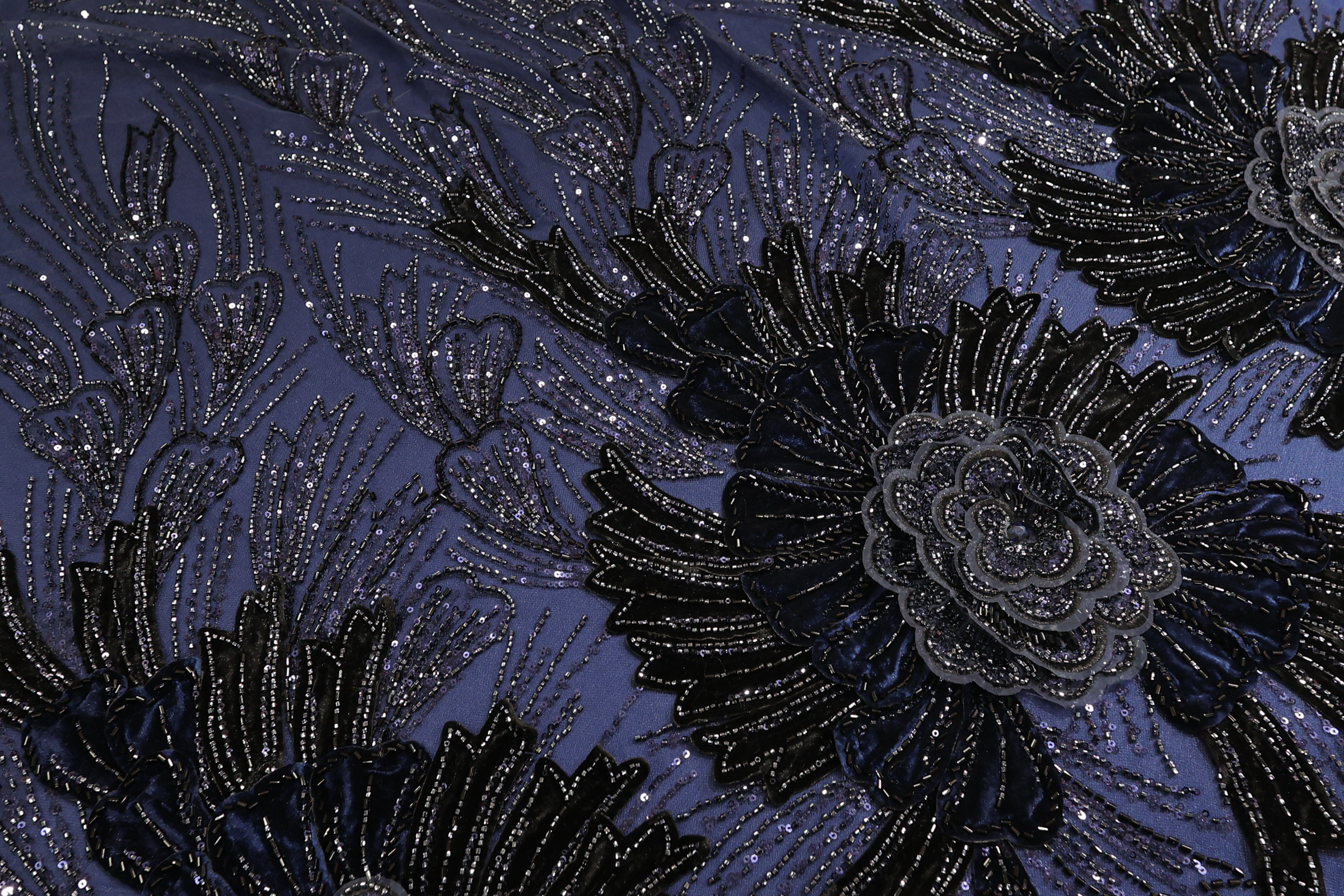 Ekskluzivna ČIPKA ELEGANCE KUPON CP067 – 36 – Luksuzni Pliš, Perle i Šljokice u dezenu