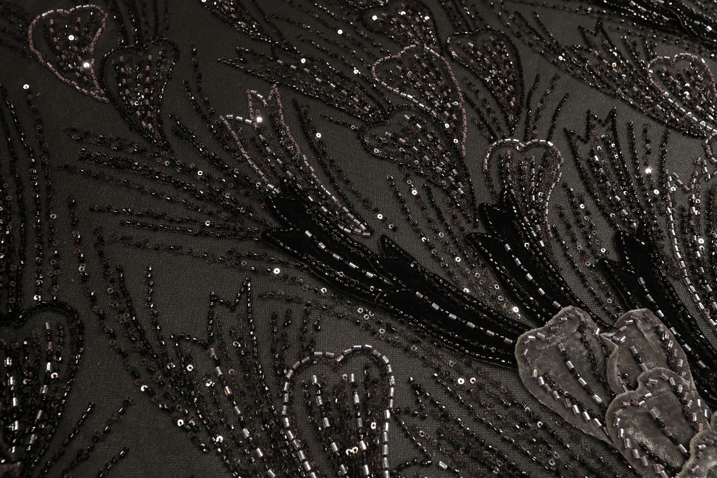 Ekskluzivna ČIPKA ELEGANCE KUPON CP067 – 39 – Luksuzni Pliš, Perle i Šljokice u dezenu