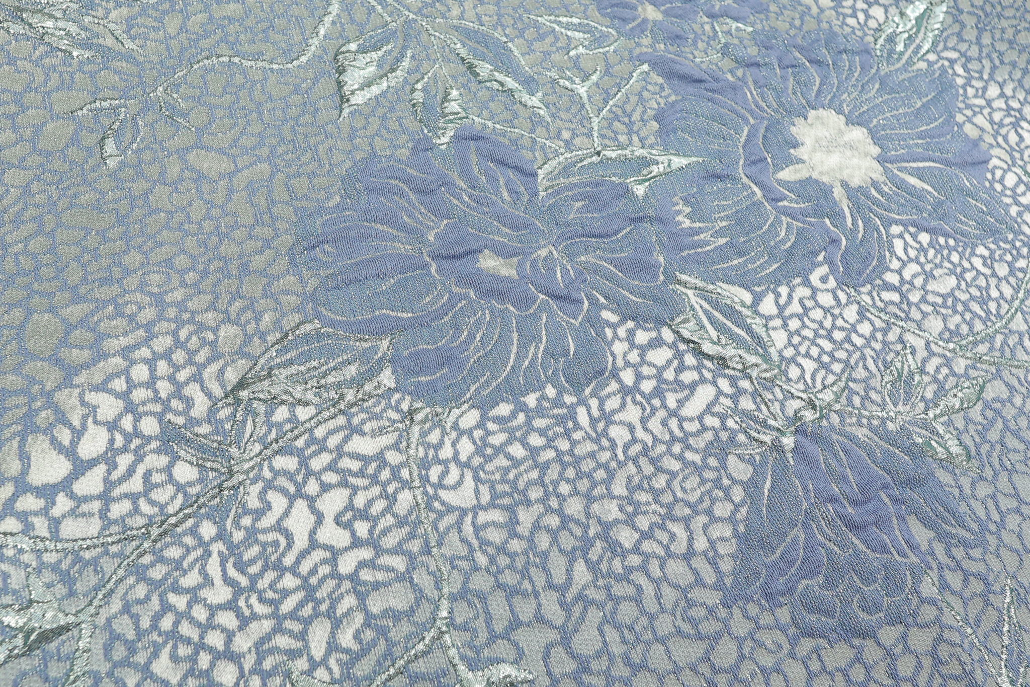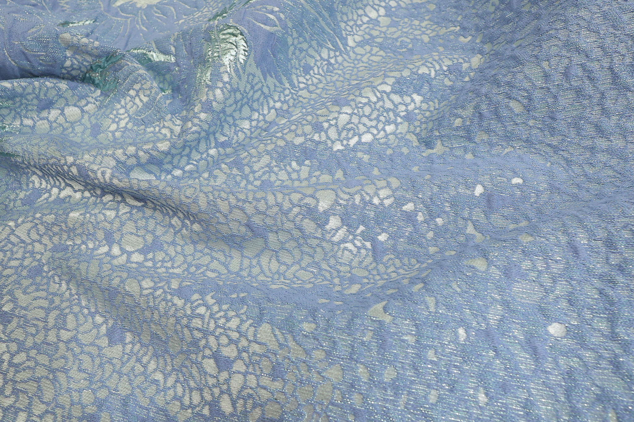Unesite dozu luksuza u svoje kreacije uz naš Brokat Selection. Ovaj vrhunski materijal iz „Selection“ linije prepoznatljiv je po bogatoj teksturi i asimetričnom cvetnom dezenu. Kombinacija Svetlije plave boje podloge i sjajnih bebi plavih cvetova, daje efekat promene boje (shimmer) koji svakom komadu odeće daje kraljevski izgled. Zahvaljujući visokom procentu metaliziranih niti, materijal ima čvrstinu i savršen pad za strukturirane krojeve.