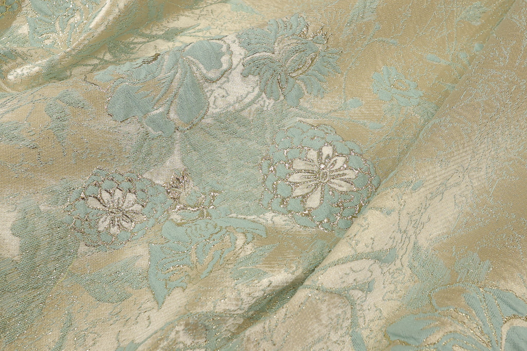 Ekskluzivni Brokat Selection PM068 – 42 Cvetni dezen u svetlo mint – rose gold boji (150cm)