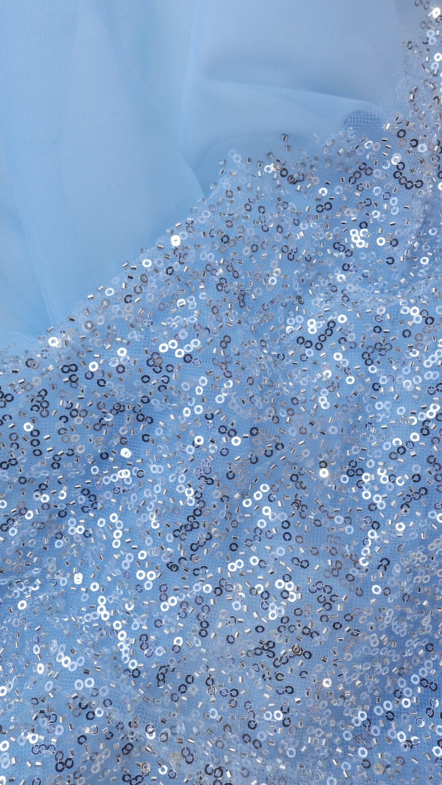Varijanta guste, jednobojne čipke sa kristalima i perlicama na tegljivoj mrežici. U odnosu na odabir postave ispod čipke, može ići kako za elastične modele „uz telo“, tako i za kruće oblike.