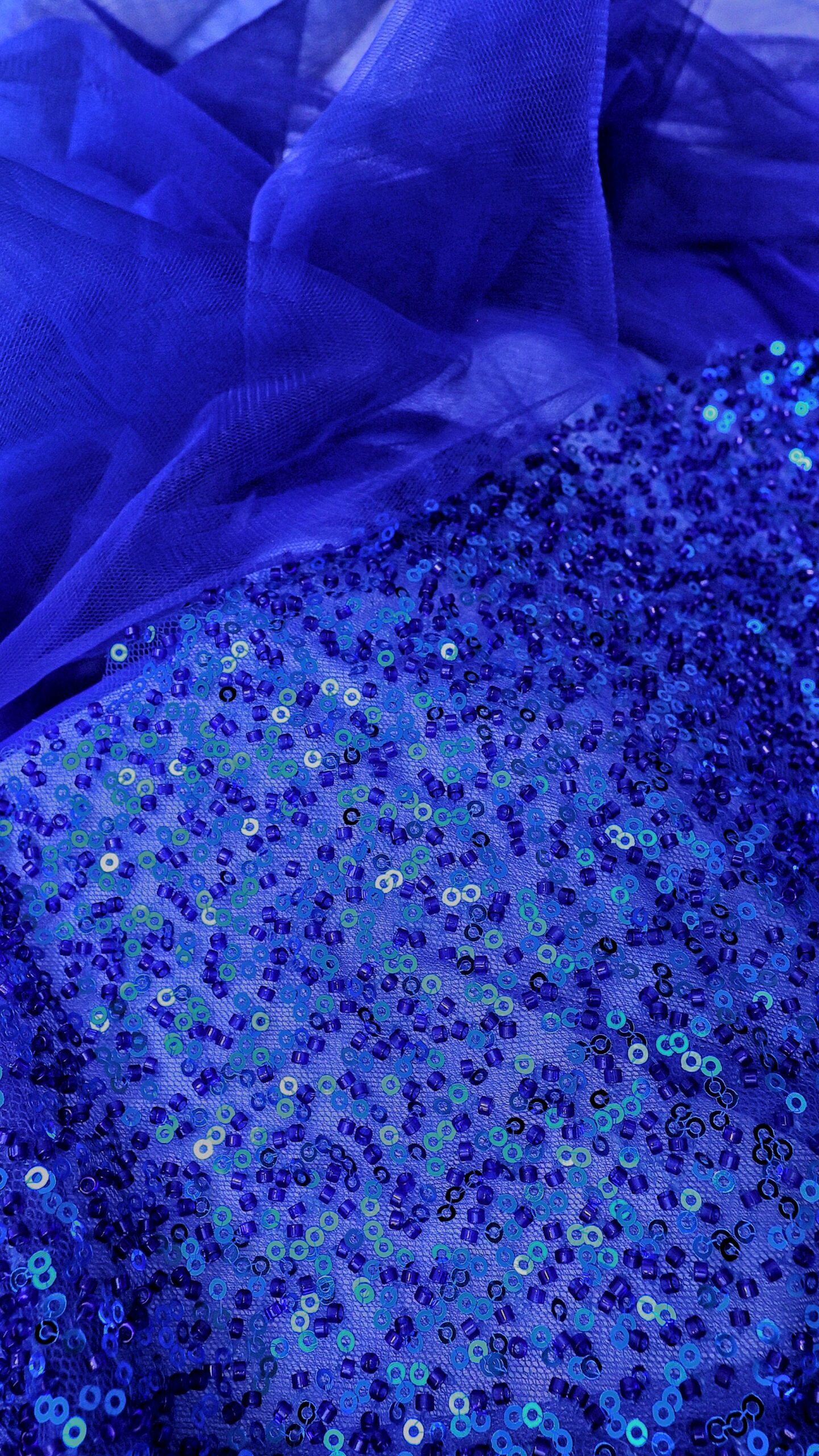 Varijanta guste, jednobojne čipke sa kristalima i perlicama na tegljivoj mrežici. U odnosu na odabir postave ispod čipke, može ići kako za elastične modele „uz telo“, tako i za kruće oblike.