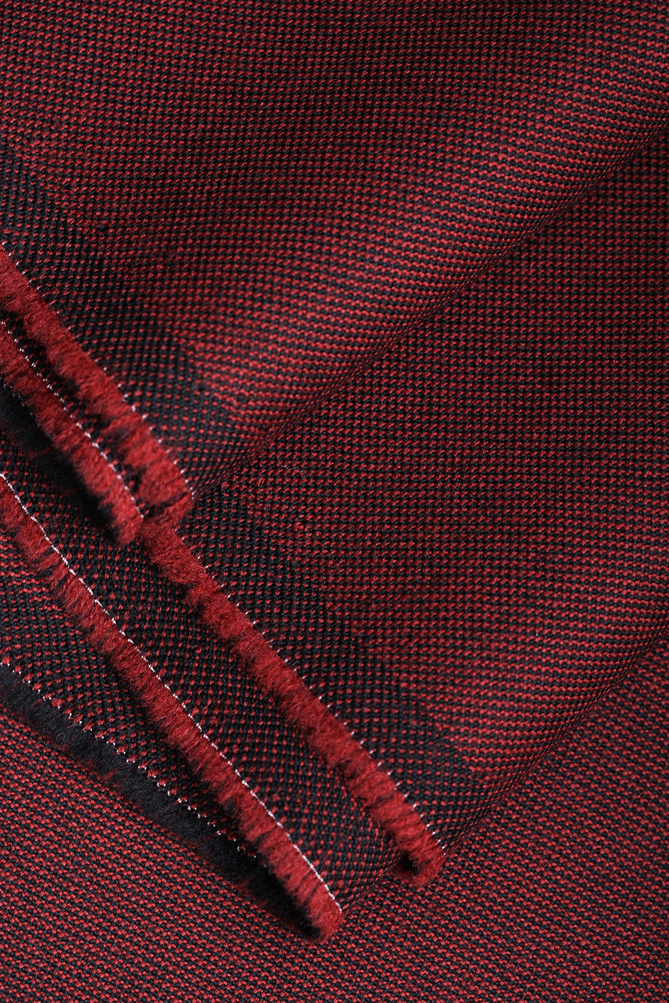 Unesite dašak vanvremenske elegancije i nenadmašnog kvaliteta u vašu garderobu sa vrhunskom hladnom vunom, direktno iz srca Italije. Ovaj materijal predstavlja sam vrhunac tekstilne izrade i jedan je od najkvalitetnijih italijanskih štofova dostupnih na tržištu. Krasi ga duboka bordo osnova protkana finim crnim nitima, stvarajući prefinjeni, melange efekat i vizuelni preliv boje. Na svetlosti, tkanina menja nijansu i dobija na bogatstvu, dajući Vašim kreacijama sofisticiran i dinamičan izgled.