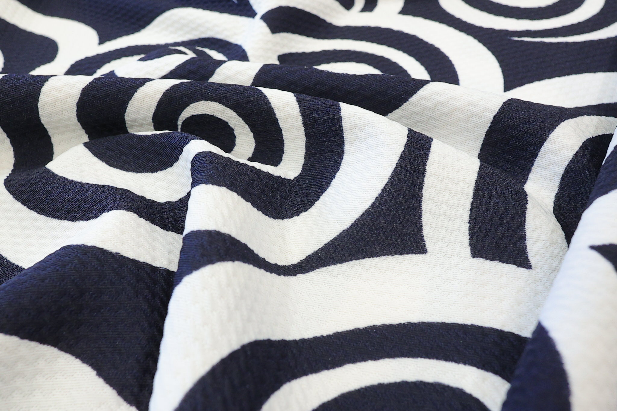 Reljefna Bordura Likra – Teget-Beli Apstraktni Spiralni Print sa Jednobojnim Panelom PE012 – 68