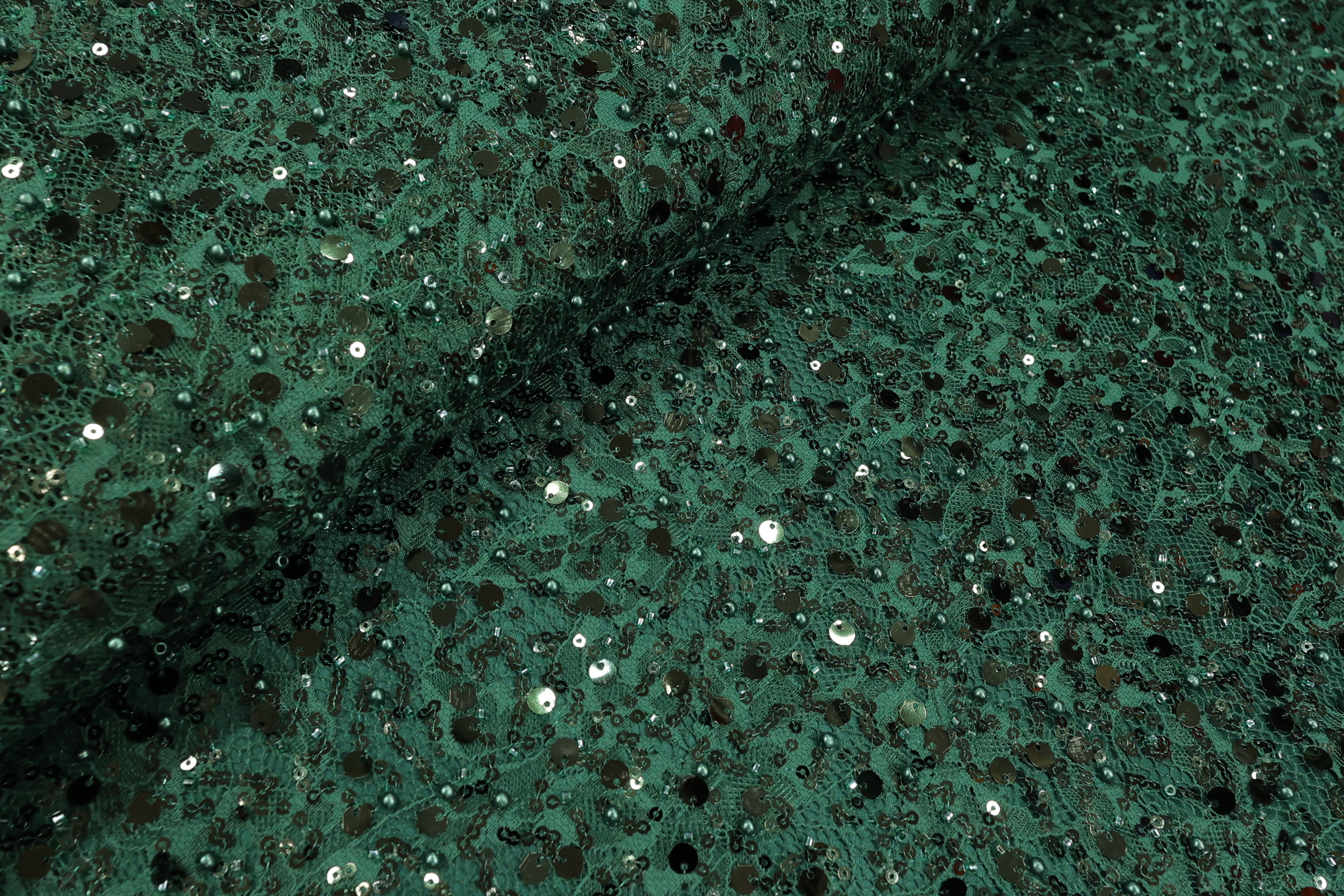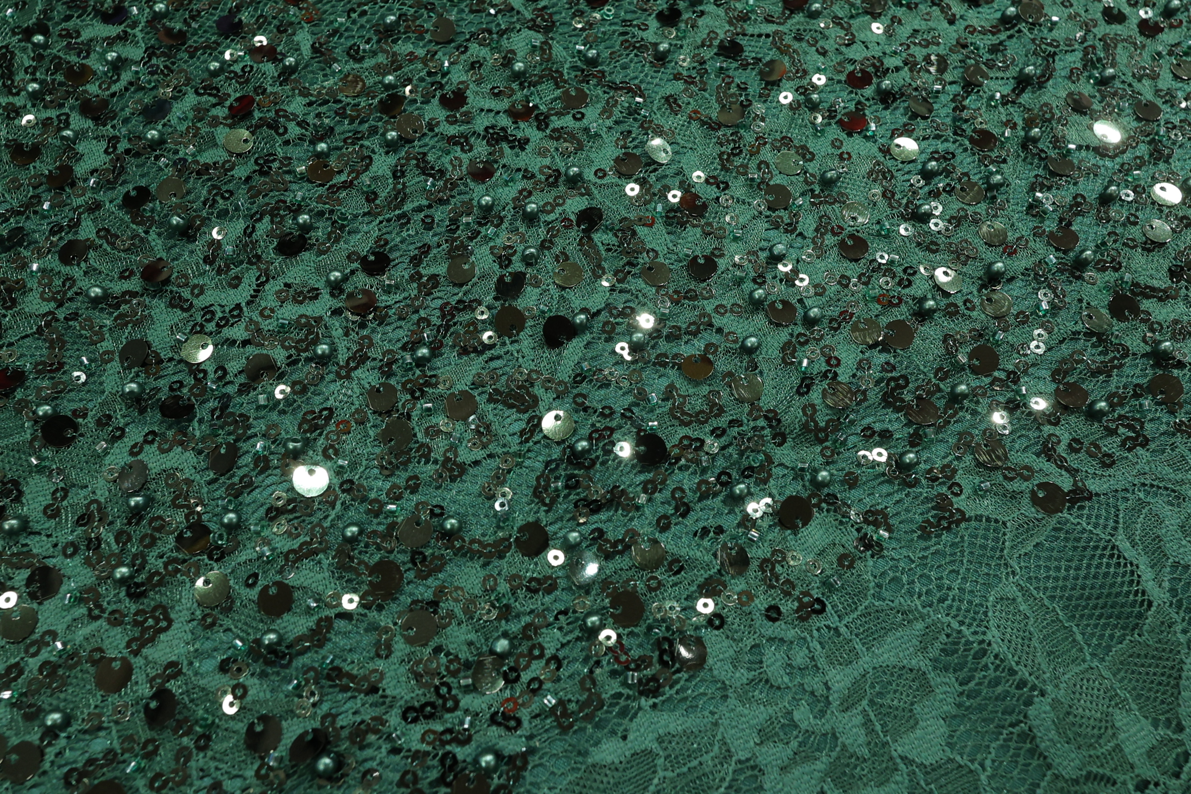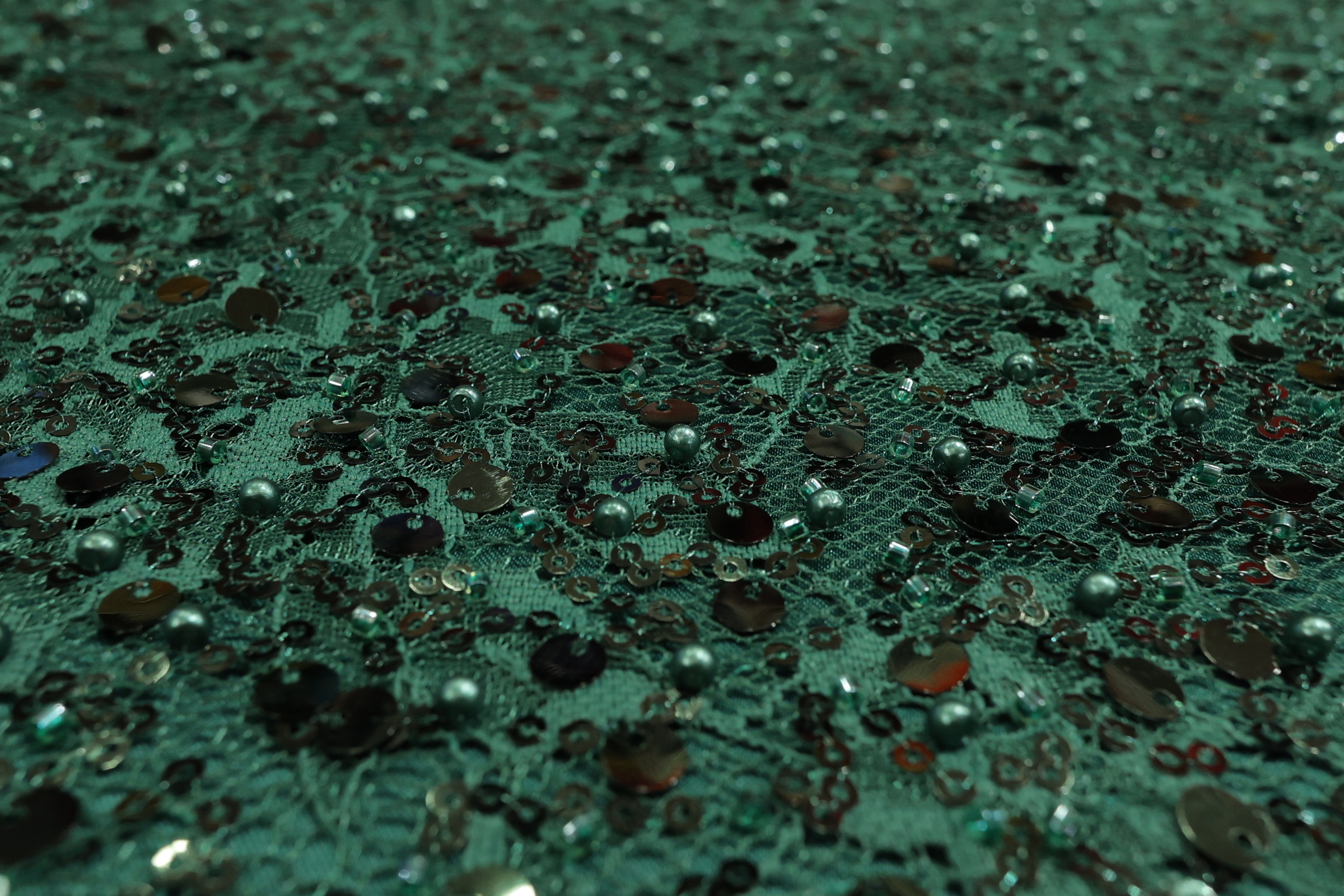Smaragdno zelena Kristalna Čipka French CP008 – 32 – Ekskluzivna gusta vezena čipka na končanoj osnovi